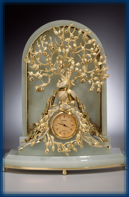 Золото, серебро, бриллианты, яшма, стекло, часы механические |
