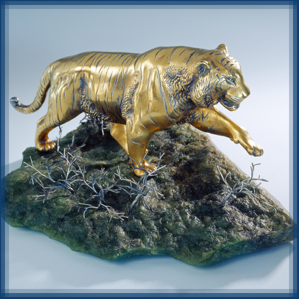 "Тигр" Серебро, позолота, нефрит |